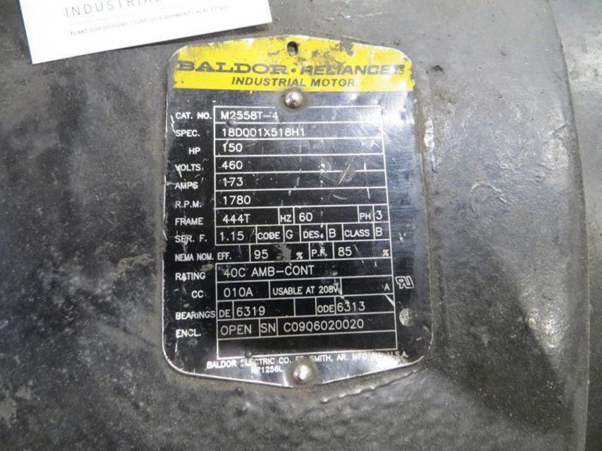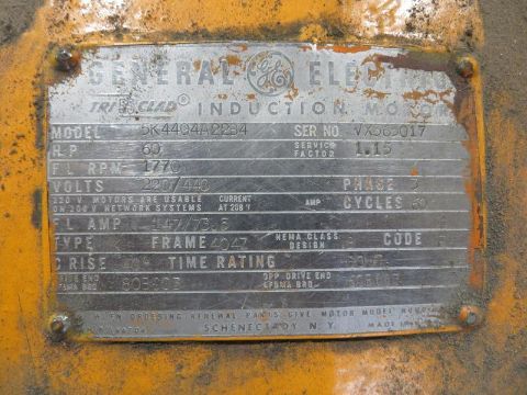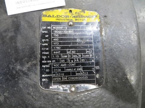 GE 60hp motor, 1770rpm, 220/440/3, M/N 5K4404A2234 and Baldor 150hp, 1780rpm, 460/3, Cat No. M2558T-4