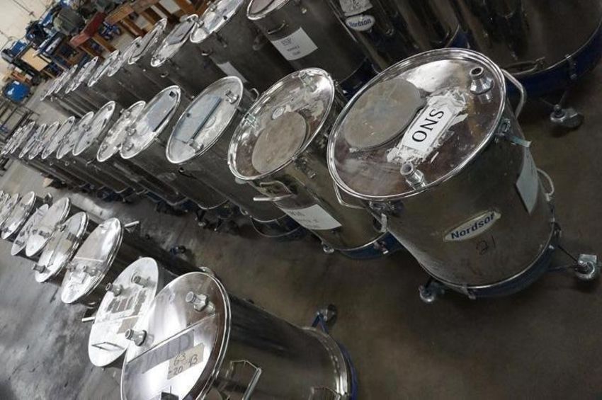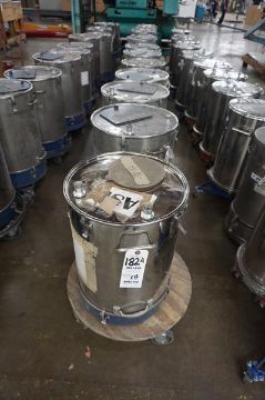 (13) Misc. Nordson powder coating Hoppers, 18 and 22 lbs capacity, with rolling bases