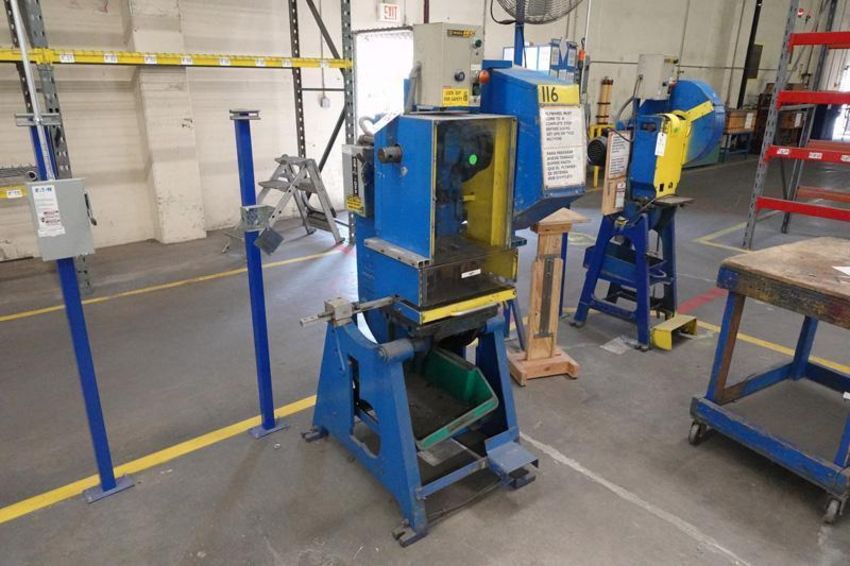 Punches, Drill & Tap Presses, Mills, Welders & Plasma Cutters, Forklifts & Stand Lifts, (110+) Sections of Pallet Racking, Sewing Machines, & More