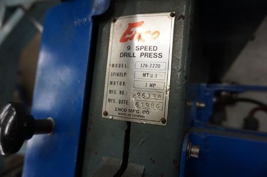 Enco Drill Press Head with Sheet Drilling Assembly, Enco M# 126-2220, W 62" (sheets 58"), with Control Pedestal